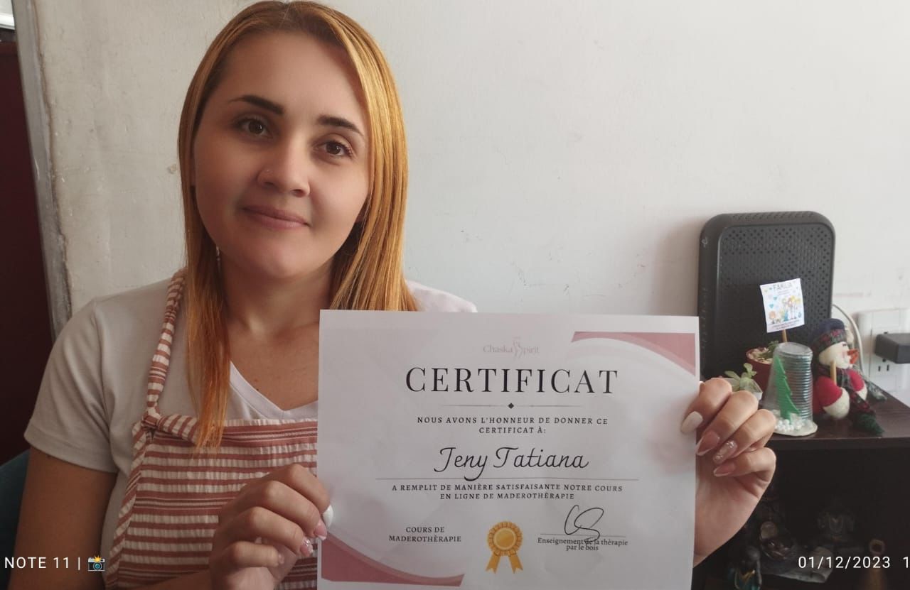 Chaque élÚve repart avec un certificat symbolique, témoin de son parcours et de son engagement dans la madérothérapie. Une façon de célébrer leur apprentissage et leur motivation.